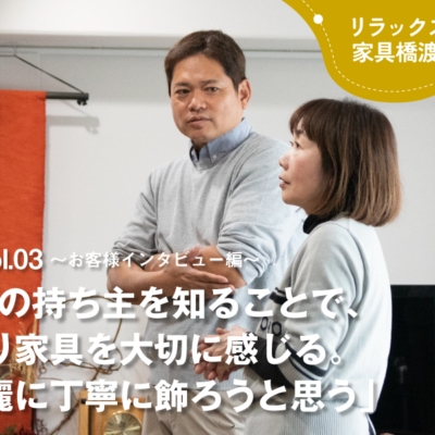 リラックスは日頃、家具をただ単に買い取りし、売るだけでなく、『大事にされた家具を次の大事にしてくれる方へ橋渡ししたい』と考えています。